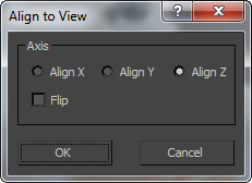 Align flyout, displays the Align To View dialog, which lets you align the local axis of an object or sub-object selection with the current viewport.
