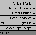 The Tools 1 (upper-left) quadrant for viewport lighting appears when a single light object is selected in the scene.