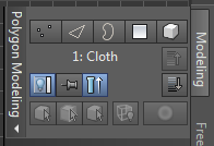 For instance, consider an editable poly object with the Cloth modifier applied. When the Cloth modifier is active on the stack, the ribbon looks like this: