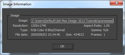 - Displays the resolution, color depth, file type and number of frames of the selected file.
