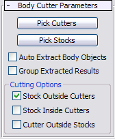 - Combines resulting Body Objects into separate groups automatically based on their classification. Produces up to three groups: StockOutsideGroup, StockInsideGroup, and CutterOutsideGroup.