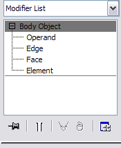 When you work with Body Objects (also Join Bodies and Body Cutter objects) in 3ds Max, you’ll find four sub-object levels available on the modifier stack: Operand, Edge, Face, and Element.