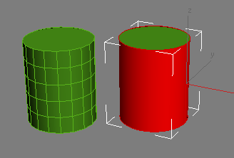Left: Mesh cylinder has many faces.