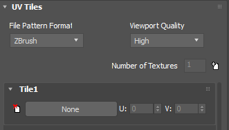 - Selects a file pattern format: Zbrush, Mudbox, UDIM (Mari) or Custom.