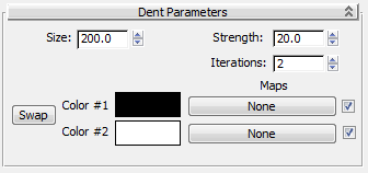 Dent is a 3D procedural map. During scanline rendering, Dent creates a random pattern based on fractal noise. The effect of the pattern depends on the map type.