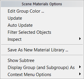This menu manages the Scene Materials group.