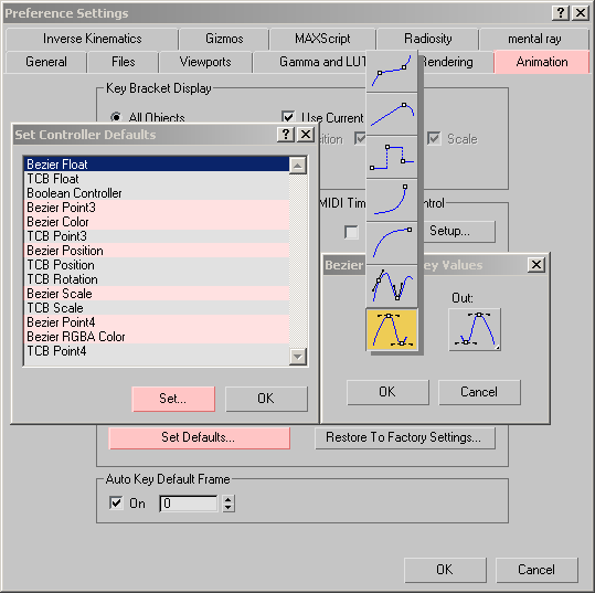 The BezierDefaultParams Structure allows you to set the default Bezier key parameters to be used for newly created Bezier controller keys.