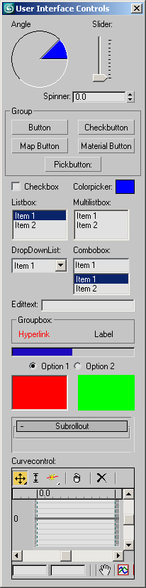 listbox theListbox "Listbox:" items:#("Item 1","Item 2")\