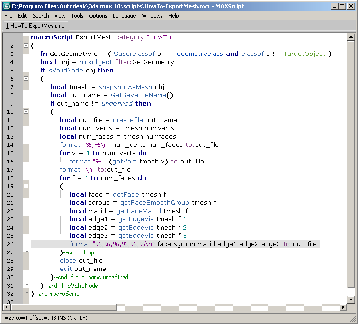 MAXScript opens the selected script in a tab inside the modeless MAXScript Editor window: