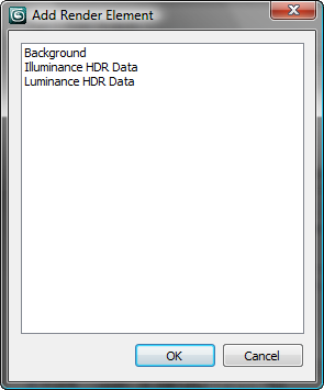 - Click to open an Add Render Element dialog that lets you choose which elements to include in the OpenEXR output.