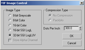 • 32-bit SGI LogLUV Creates a color image that includes a logarithmic encoding of the luminance channel and UV color coordinate information.