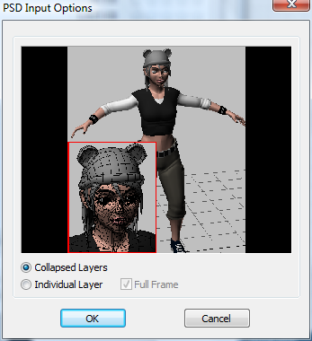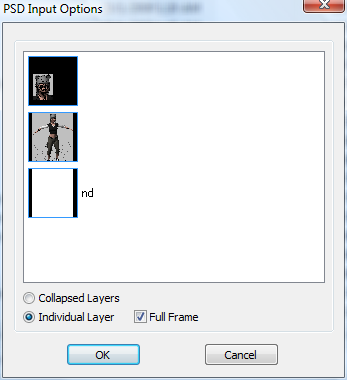 When you open a PSD file as a bitmap, a dialog appears that lets you choose how to use the image.
