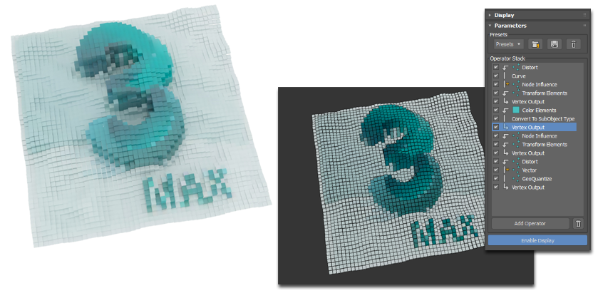 An example of using multiple operator types in sequence to create a complex animated effect.