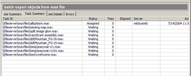 rem begin batch filedir \\fileserver\maxfiles\*.max /s /b >c:\fileslist.txt c: cd "\Program Files\Autodesk\3ds Max 2010" cmdjob -jobname "batch export objects from max files" -manager managername -tasklist c:\filelist.txt 3dsmax.exe %%tp1 -U MAXScript \\fileserver\scripts\export.ms rem end batch file