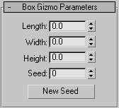 BoxGizmo lets you create a box-shaped gizmo in your scene. Clicking the BoxGizmo button displays the Box Gizmo Parameters rollout.