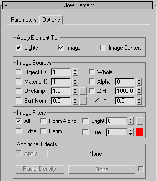 Each Lens Effects rendering effect has an Options panel that lets you choose how the effect is applied.