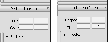 The Rebuild options let you quickly change the degree (from 1 to 9) and the number of spans of the picked curves or surfaces through one of the following methods: