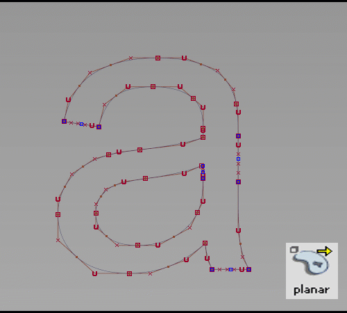 The Set Planar tool (Surfaces > Planar Surfaces > Set Planar) now indicates which selected curves have open and closed intersections. In addition to the Error creating a trimmed surface message appearing in the Prompt line, red crosses display at open curve intersections. Yellow dots also display when closed intersections are detected. With this feedback, you can quickly identify which curves need correction so that the tool can successfully create the trimmed NURBS surface. Note that red crosses display on curves when: