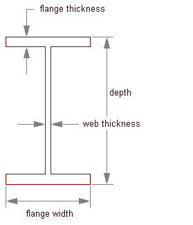 For example, the dimensions of the steel beam selected in the previous illustration include its depth (d), flange width (bf), flange thickness (tf), and web thickness (tw). When you create a style, these dimensions create the following shape that is stored in the style.