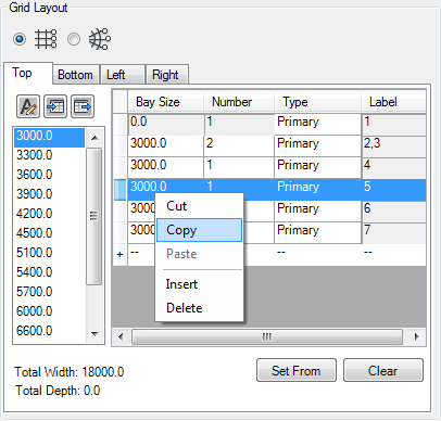 - To add the first bay to the grid, determine the desired size (for example, 3000 mm) and click the corresponding value in the value list on the left.