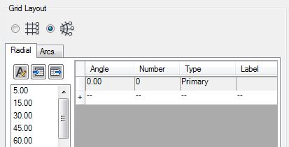 - To add the first bay to the grid, determine the desired angle (for example 15°) and click the corresponding value in the value list on the left.