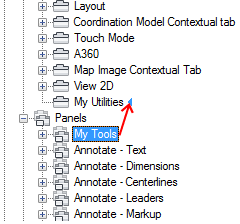 Use the visual indicator bar to specify the position of the ribbon panel on the ribbon tab.