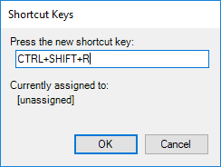 - Click OK to assign the key combination and close the Shortcut Keys dialog box.