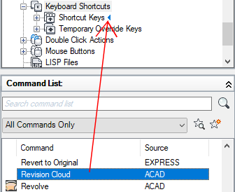 - To create a shortcut key, in the Command List pane, drag a command to the Shortcut Keys node in the Customizations In