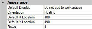 - In the Rows box, enter a number. Enter the number of rows to wrap the buttons on the toolbar if possible. 0 is the default value. (Available only if Orientation is set to Floating.)