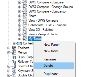 Caution: There is no way to undo the removal of a ribbon panel. If you remove the wrong ribbon panel, click Cancel to close the Customize User Interface (CUI) Editor and not save the changes made. Doing this though will undo any other changes that you might have made.