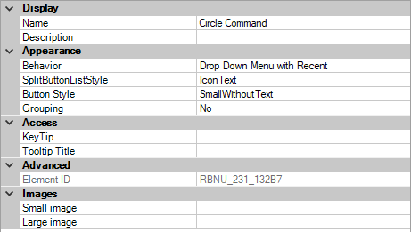 - Adjust the properties of the drop-down as desired to control the appearance of the drop-down and the commands under the drop-down.