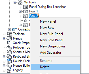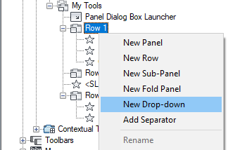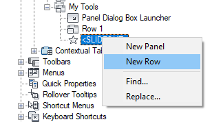 - Right-click the ribbon panel to which you want to add a row. Click New Row.