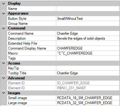 - In the Properties pane, change the properties of the command you added.
