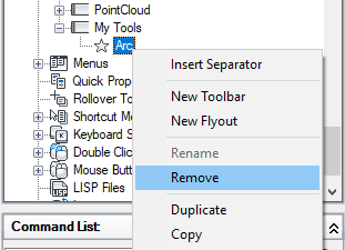 - Drag the command you want to remove from the toolbar and drop it over the drawing area.