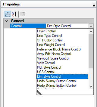- In the Properties pane, Control box, click the down arrow to display a list of all available toolbar controls.