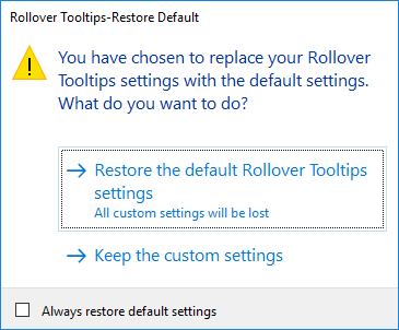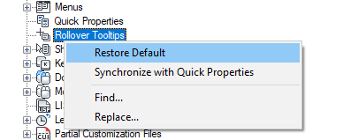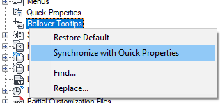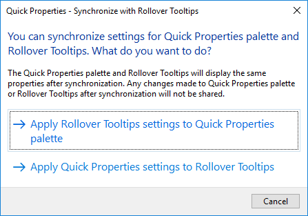 If an object type is checked, the properties for that object type are displayed in a rollover tooltip when the cursor hovers over an object of the same type. Clear the check mark next to an object type to remove support for that object type from rollover tooltips.