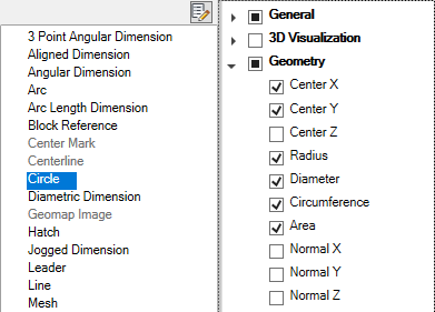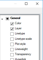 If a property is checked, the property is displayed on a rollover tooltip when the cursor hovers over an object of the selected object type in the drawing window. Clear the check mark next to a property to remove the property for the selected object type.