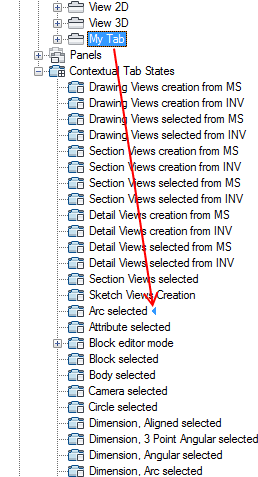 - Drag a ribbon tab from the Tabs node to a ribbon contextual tab state.