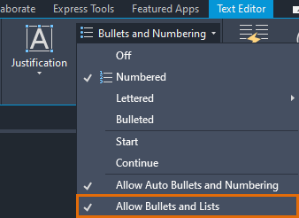 2. On the Text Editor ribbon contextual tab, Paragraph panel, click Bullets and Numbering. Choose Numbered.