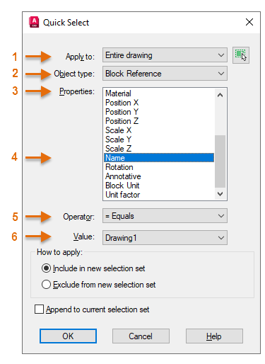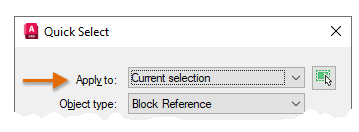 In addition to providing a fast way of counting specified blocks, the Quick Select feature can also be used for many other tasks involving a selection set. For example, you can use Quick Select to do the following: