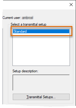 In the Create Transmittal dialog box, under the Select a Transmittal Setup section, click Transmittal Setups.