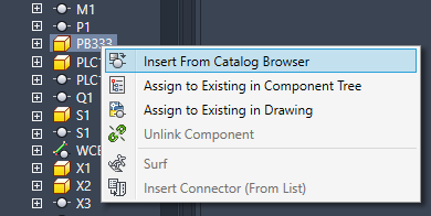 Link an unlinked Inventor part, in your component tree, with an AutoCAD Electrical toolset component, inserted from the catalog browser in your drawing.