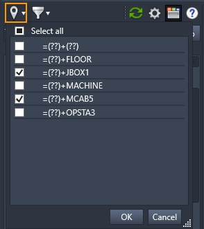 Note: If the AutoCAD Electrical toolset project is not linked to an Inventor project, the Location View buttons do not match the image shown.