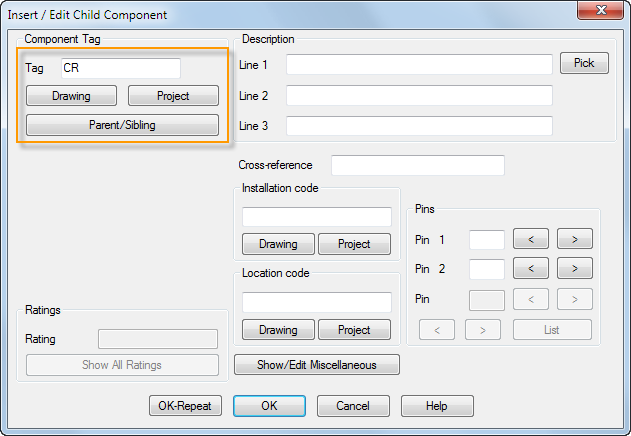 When you insert a parent symbol, AutoCAD Electrical toolset assigns it a unique tag value based on the drawing properties. The tag value is the identifier for a device.
