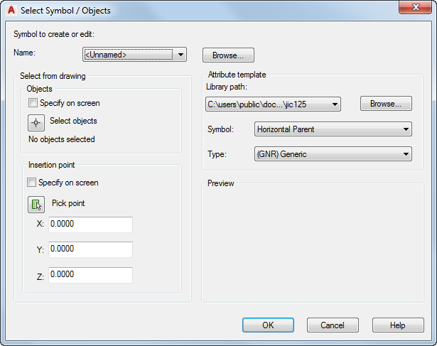 Start from scratch or use an existing symbol that is similar as a starting point. Select the symbol type, insertion point, and orientation. It is recommended for schematic symbols to create both a horizontal and vertical version. Symbol Builder works in the AutoCAD block editor environment. Use the Symbol Builder Attribute Editor palette to insert the necessary attributes for the selected symbol type.