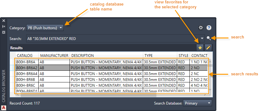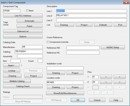 Each symbol can have a main catalog value and a number of what AutoCAD Electrical toolset calls "multiple catalog" values. Edit a component to add, edit, or remove catalog assignments.