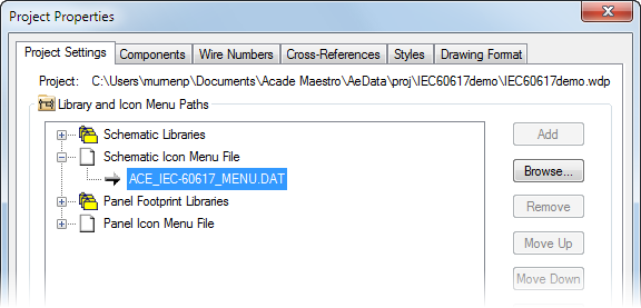 Use the Project Settings tab on the Project Properties dialog box to define the path for which set of library symbols you want to use for a particular project.
