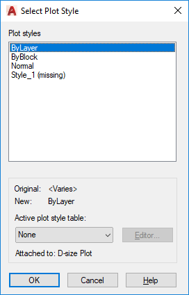 Displays the available plot styles, including the default plot style, NORMAL. A plot style is a collection of property settings used in plotting.
