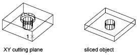 The cutting plane is defined with 2 or 3 points, by specifying a major plane of the UCS, or by selecting a surface object (but not a mesh). Either one or both sides of the sliced 3D solids can be retained.