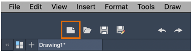 AutoCAD includes a tool set to the left of the drawing area. You can access nearly all the commands presented in this guide from the Drafting tab. In addition, the toolbar above the drawing area includes familiar commands such as New, Open, Save, Print, Undo, and so on.